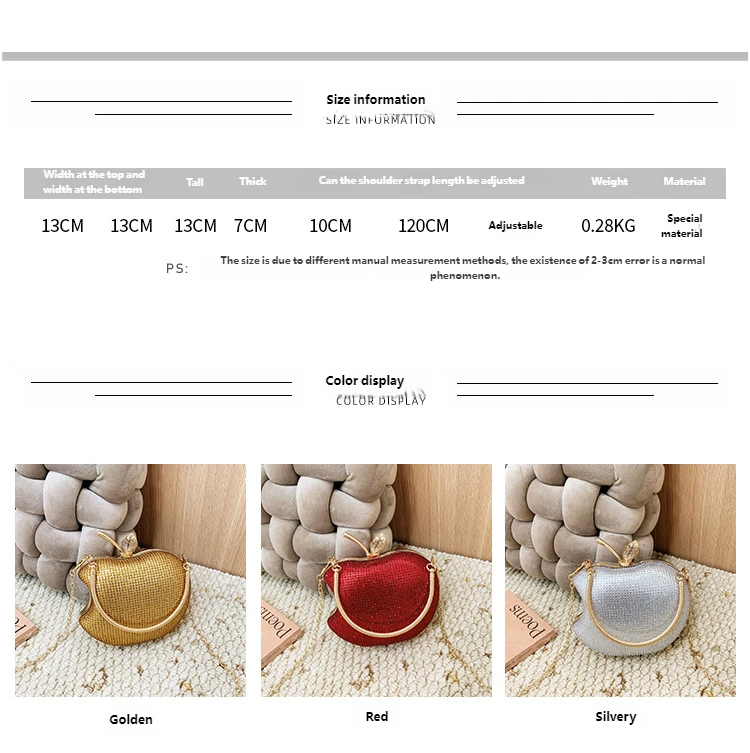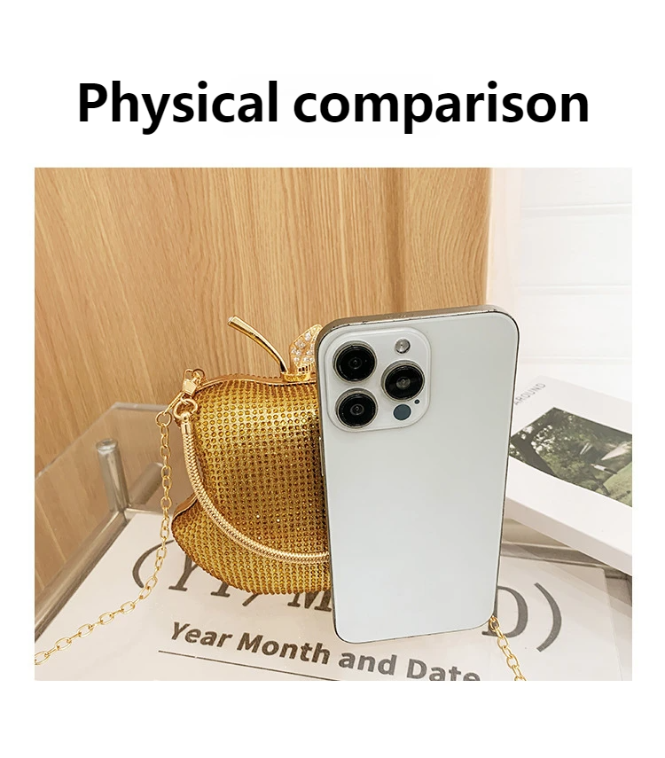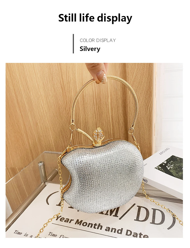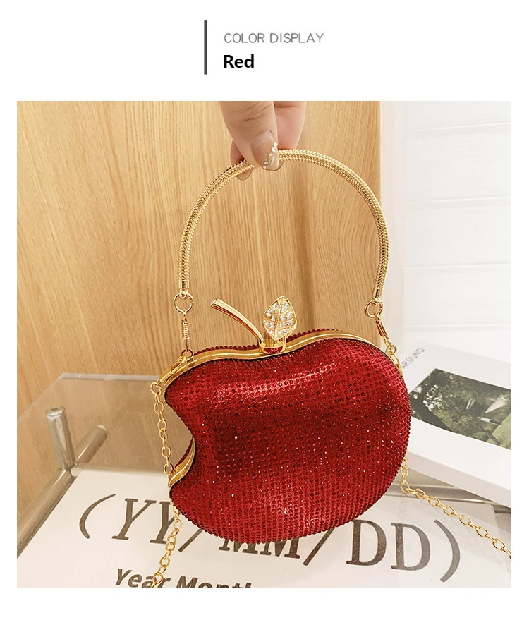 Perfect for Brides, Socialites & Party Lovers! Shines at Weddings, Galas & Evenings—apple-shaped with rhinestones for luxury style.