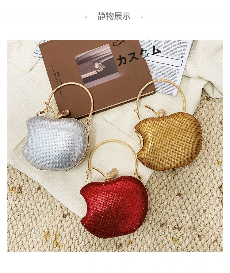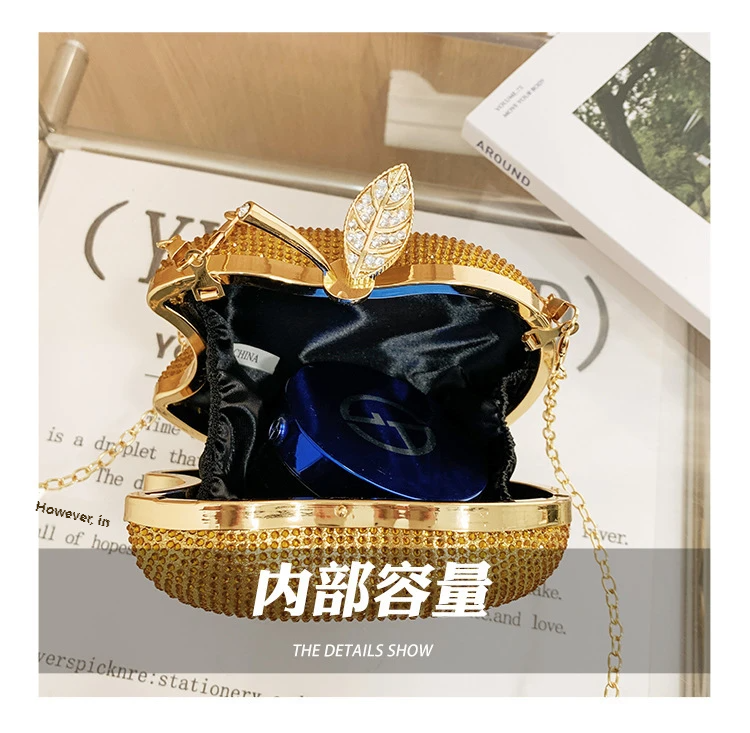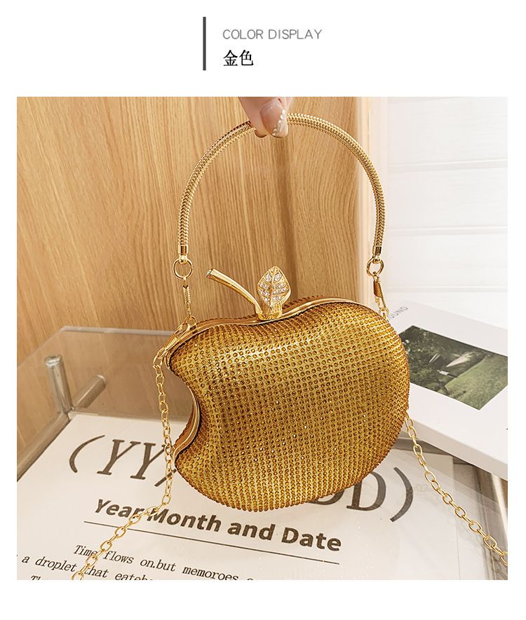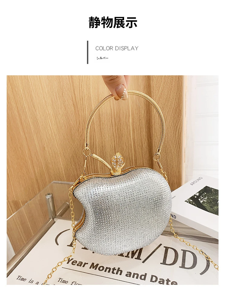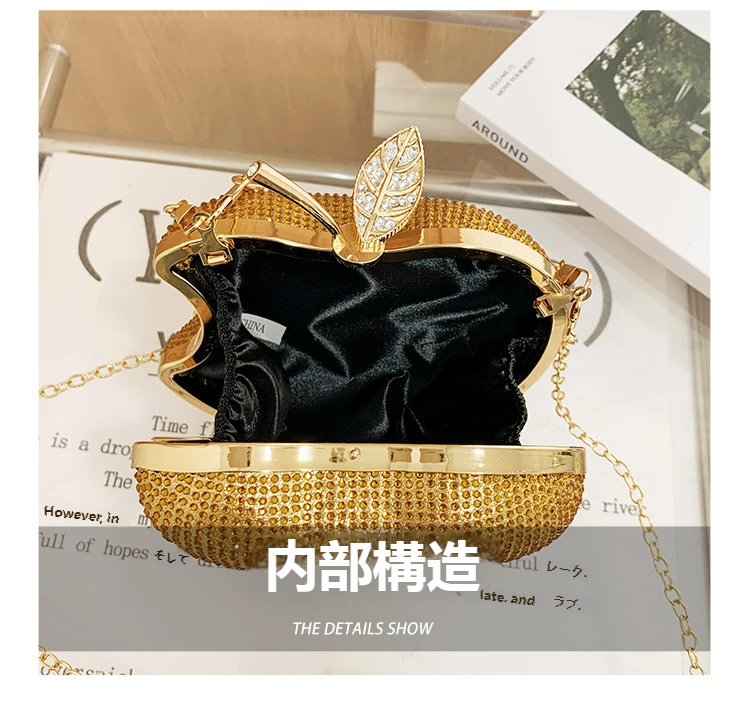 クロスボーダー人気女性イブニングバッグ - スタイリッシュリンゴ型アクリルクラッチラインストーンチェーン
