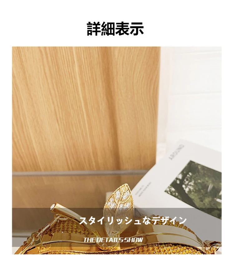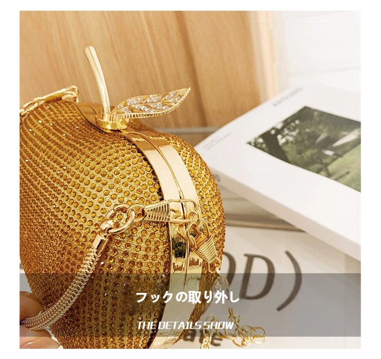 花嫁・ソーシャル ite・パーティー客に必携!ウエディング・ガラ・イブニングで輝け — リンゴ型ラインストーンがラグジュアリー感を添える